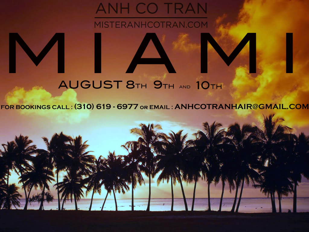 July 30, 2013 MIAMI: BOOKING NOW! 8/8 – 8/10 SPACE IS LIMITED! BOOK NOW: CALL 310.619.6977 OR ANHCOTRANHAIR@GMAIL.COM Anhspiration, Classes, Travel Diaries Share: