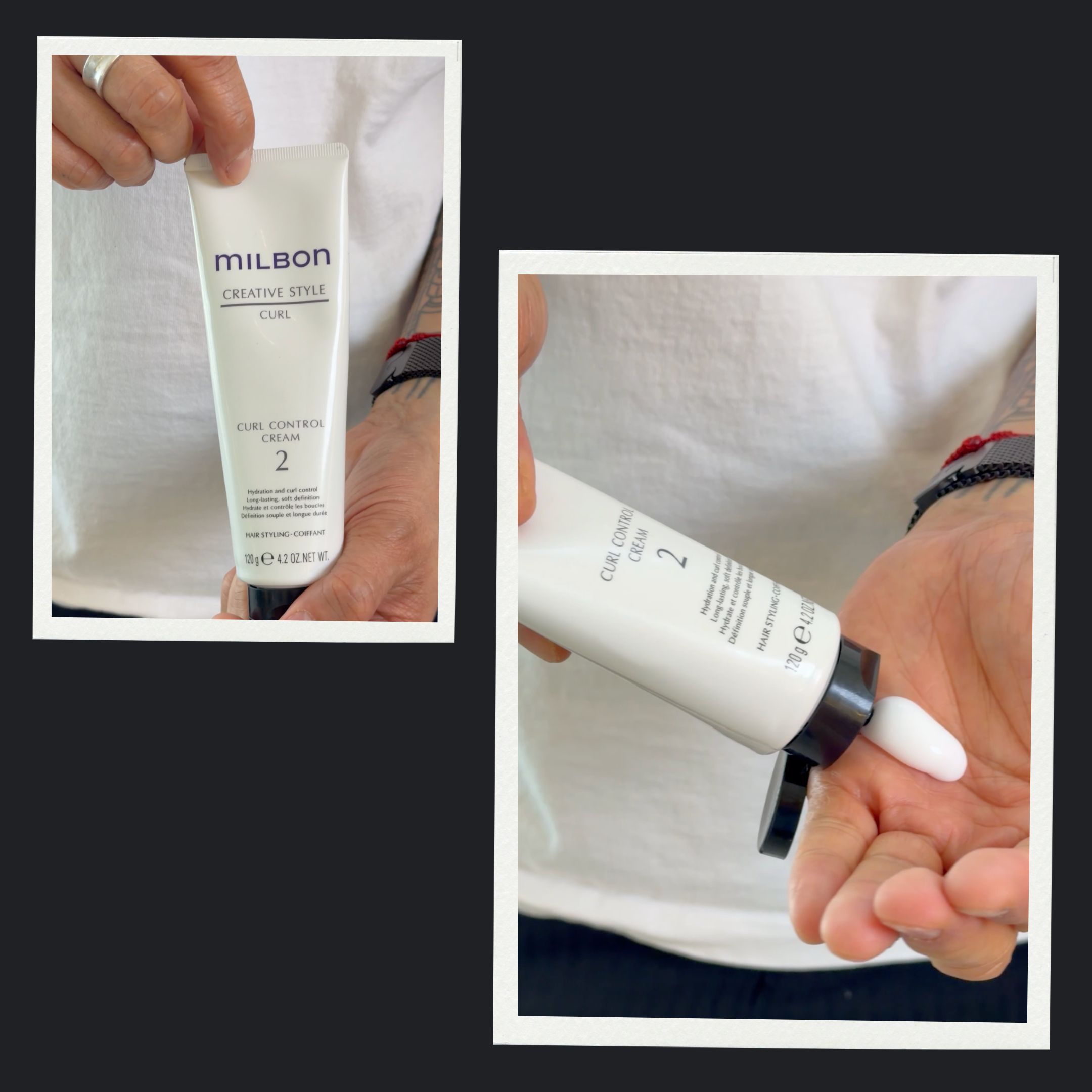 Milbon’s Curl Control Cream 2: Infused with Shea Butter and Squalane, this is great for a soft, flexible hold and lightweight finish.